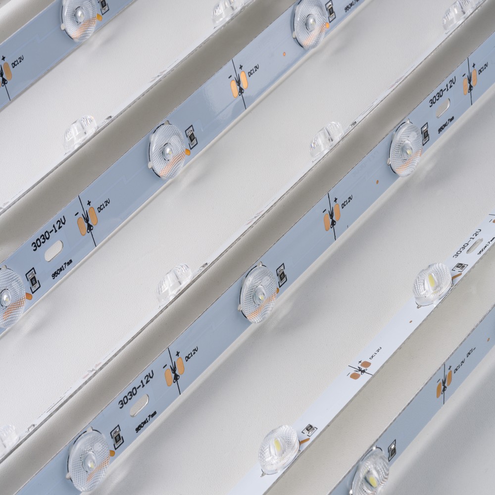 The diffuse reflector light strip disperses light evenly through lenses or special materials, effectively reducing the glare and shadows of direct light, creating a soft and uniform lighting environment, suitable for long-term use, especially in spaces that require comfortable lighting such as bedrooms, study rooms, living rooms, etc. It can improve visual comfort and reduce eye fatigue.