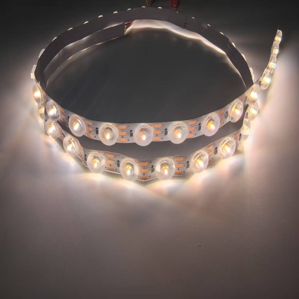 2835-48 Led dual color diffuse reflector light strip, equipped with a dual color controller, the color temperature can be adjusted from warm white light to white light. It comes with adhesive backing and can be directly pasted into large-sized profiles and advertising light boxes. The diffuse reflector lens evenly scatters the light, making it atmospheric for both home decoration and commercial occasions.