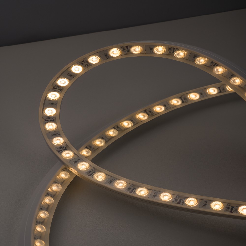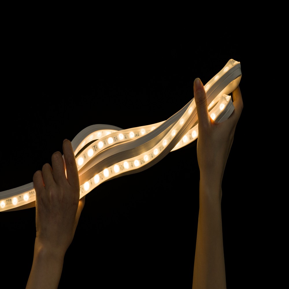 Flexible and adaptable to complex shapes: The core advantage lies in the “flexibility” feature, which allows for free bending and folding according to the curvature of the wall surface (such as curved background walls, circular columns) and corners (such as stair walls, irregular decorative surfaces), without the need for cutting and splicing like rigid wall washers. It can closely fit irregular walls or decorative structures, easily achieving “shape following lighting”, especially suitable for non-linear scenes such as internet famous curved ceilings, art installation walls, cylindrical display cabinets, etc.