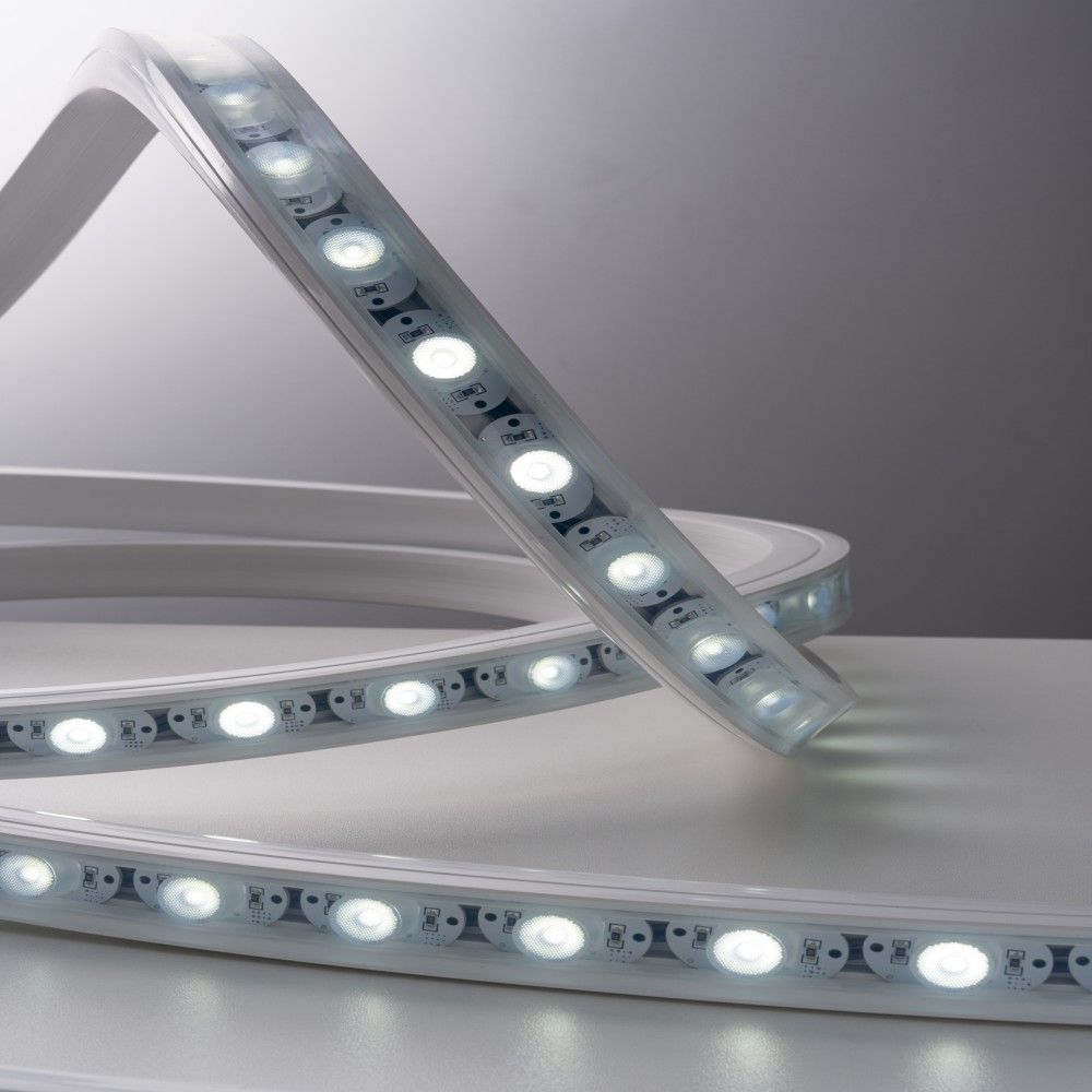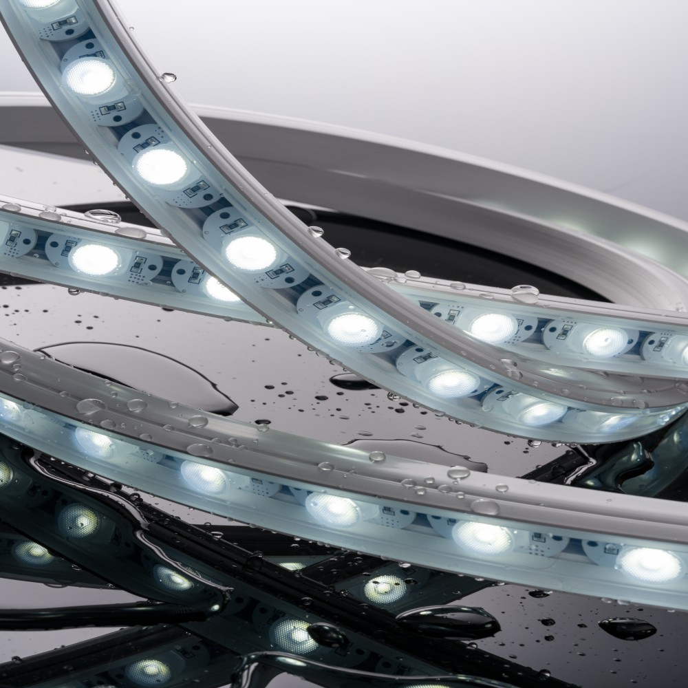 Flexible and adaptable to complex shapes: The core advantage lies in the “flexibility” feature, which allows for free bending and folding according to the curvature of the wall surface (such as curved background walls, circular columns) and corners (such as stair walls, irregular decorative surfaces), without the need for cutting and splicing like rigid wall washers. It can closely fit irregular walls or decorative structures, easily achieving “shape following lighting”, especially suitable for non-linear scenes such as internet famous curved ceilings, art installation walls, cylindrical display cabinets, etc.