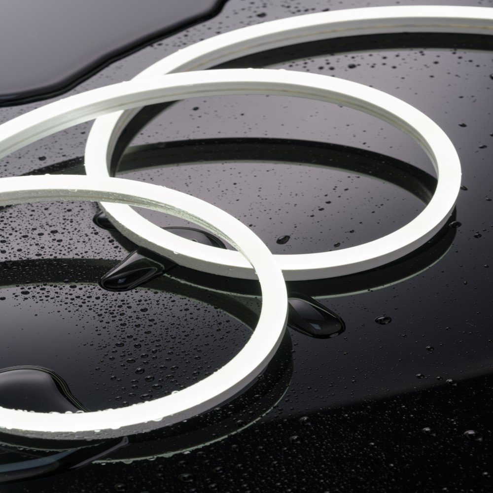 High flexibility: The silicone material of the side curved silicone light strip is soft and can be bent into various shapes such as arc, circle, wave, etc., which can adapt to different installation environments and design requirements. It is especially suitable for making circular or corner shapes on flat surfaces, such as ceilings, wall decorations, etc.