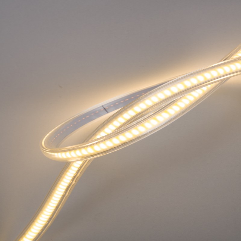 Compared with the trouble of requiring an additional transformer for low-voltage COB light strips, 220V COB light strips can be directly connected to household or commercial 220V circuits without the need to purchase an extra compatible power supply. This not only reduces installation costs but also eliminates the cumbersome steps of “finding a place to put the transformer” and “hiding the circuit”. Whether it’s the full-circle lighting of the living room ceiling in a home, the long strip decoration of the bedroom background wall, the large-scale decoration of the shopping mall window in a commercial place, or the layered supplementary lighting of the supermarket shelves, just connect the light strip terminal to the circuit (it is recommended to be operated by a professional electrician), and it can be quickly lit up. It is especially suitable for the lighting needs of long lengths and large areas. It avoids the problem of “short-distance splicing” of low-voltage light strips caused by the power limit of the transformer.