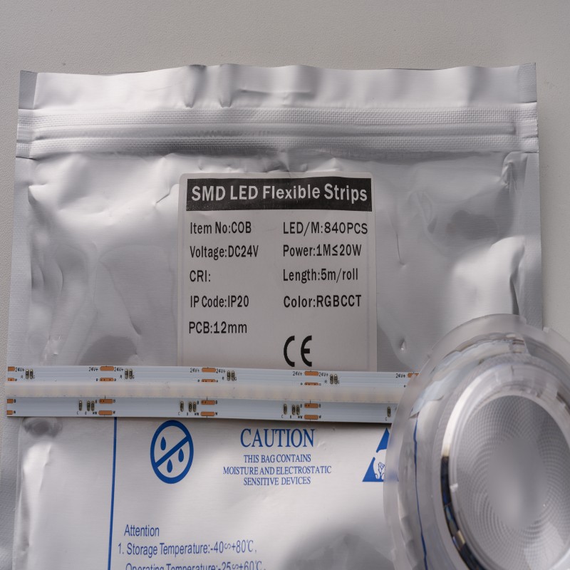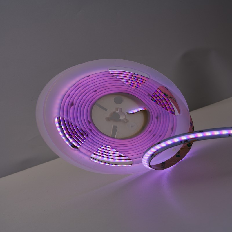 Today, with increasingly diverse lighting demands, people’s requirements for lighting are no longer as simple as “bright” – uniform without dark areas, high brightness without being dazzling, and adaptable to multiple scenarios have become the core standards for high-quality lighting. This 24V COB RGBCCT light strip, with its unique chip integration technology, perfectly combines “uniform light effect” with “safety and practicality”. From home main lighting to commercial decorative lighting, it can bring a lighting experience far exceeding that of traditional light strips, infusing the space with a soft yet powerful sense of light.